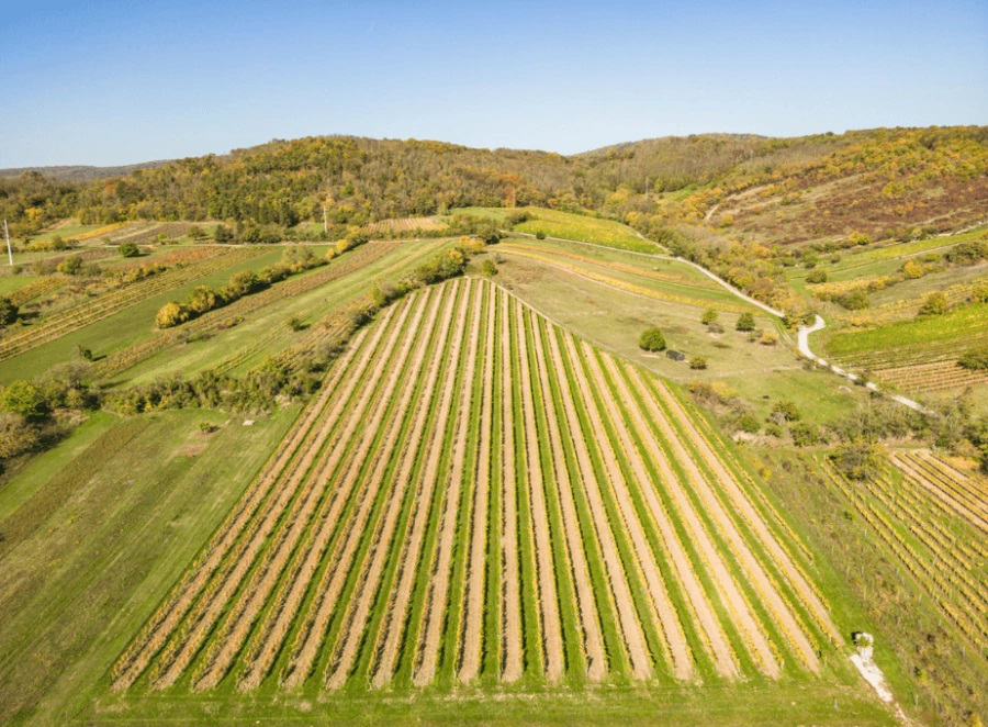 Die Trauben für diesen außergewöhnlichen Wein kommen aus St. Georgen am Leithagebirge, genauer gesagt aus der Ried Schildten, die 1570 erstmals urkundlich erwähnt wurde und seit 1641 im Besitz von Esterházy steht. Die Reben auf diesem nach Süd-Süd-Ost ausgerichteten Weingarten wurden im Jahr 1996 gepflanzt. „Dank der kargen Braunerde mit extrem hohen Kalkgehalt strahlen die Weine aus der Ried Schildten eine faszinierende Mineralik aus, denn die Trauben profitieren hier von optimaler Sonneneinstrahlung und somit besten Reifebedingungen. Kühle, nächtliche Fallwinde aus den Wäldern des Leithabergs sorgen für vielschichte Aromen.“ erklärt Weingutsleiter Wolfgang Hewarth.
