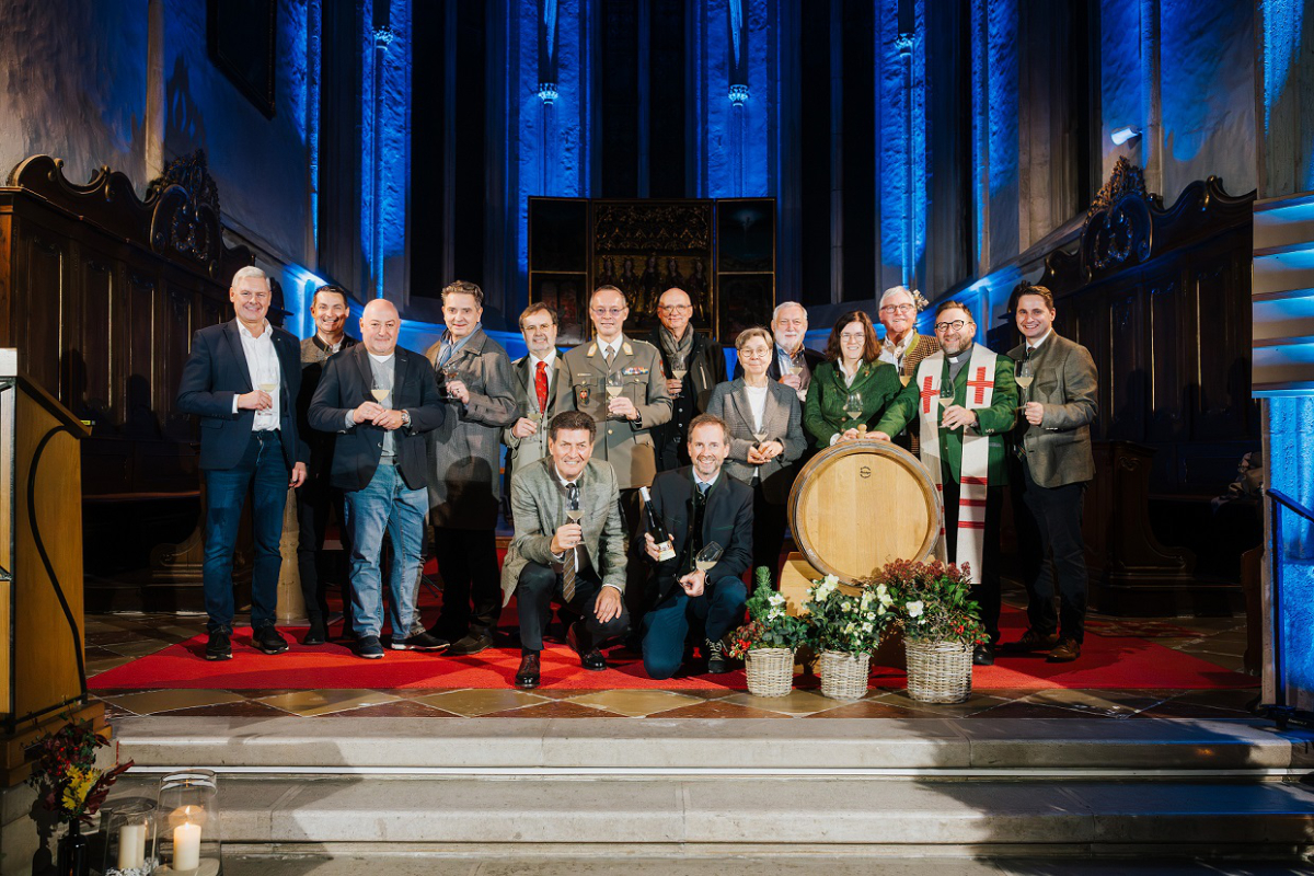 Nach dem kirchlichen Teil öffneten sich die Tore der Pfarrkirche für die traditionelle Agape am Kirchenplatz – ein Ort des Genusses, der Begegnung und des Austauschs. Dabei wurden die ersten Kostproben des neuen Jahrgangs sowie Raritäten an der Weinbar gereicht, begleitet von kulinarischen Köstlichkeiten des Hotels Schloss Haindorf. Die zahlreichen Besucher:innen nutzten die Gelegenheit, mit Winzer:innen und Paten ins Gespräch zu kommen, Erinnerungen zu teilen und auf das Jubiläum anzustoßen.