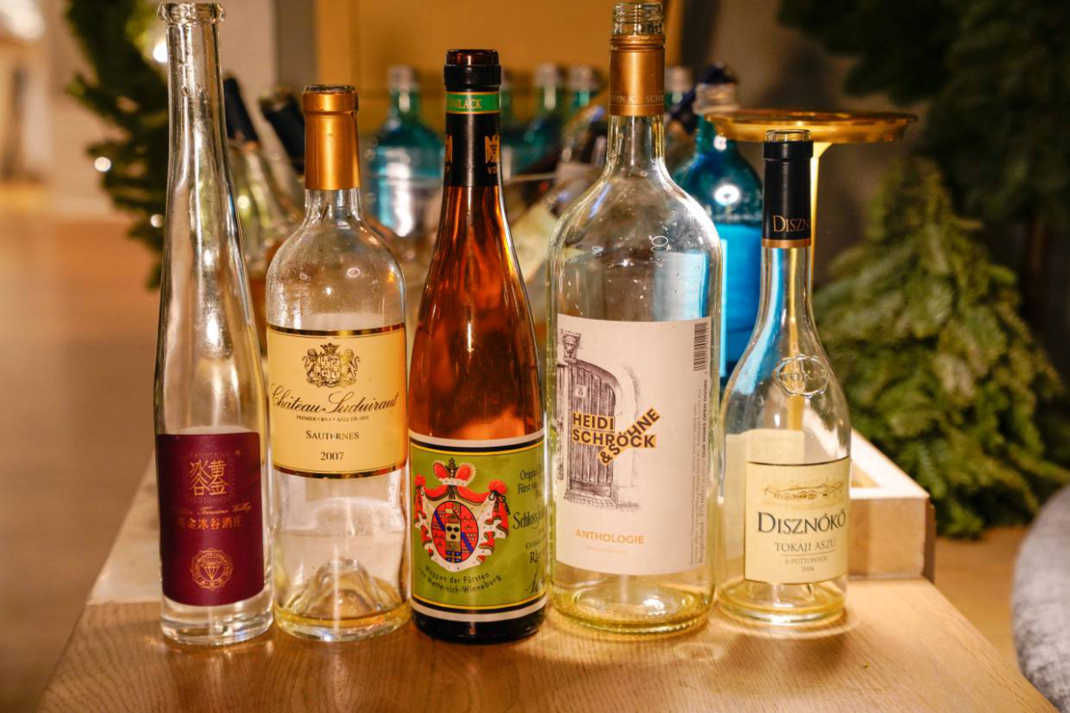 Vier der besten Süßwein-Produzent:innen waren bei „Late Harvest United” vertreten: Gastgeber Schloss Johannisberg aus dem Rheingau/Deutschland, Château Suduiraut aus Sauternes/Frankreich, Disznókő aus Tokaj/Ungarn und das Weingut Heidi Schröck & Söhne aus Rust am Neusiedler See/Österreich. Als Zeichen an den chinesischen Weinmarkt, auf dem Süßweine hoch im Kurs stehen, präsentierte Lin Liu MW zudem einen Eiswein des Château Changyu.