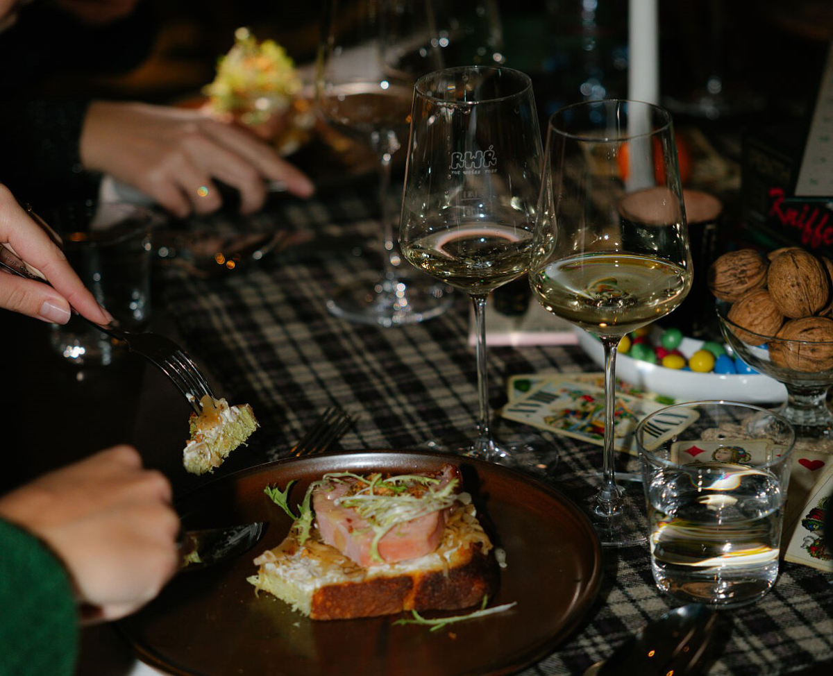 Mit dem Event „RWR: THE LAUNCH EXPERIENCE“ feierte rot weiss rosé den Auftakt zum neuen Weingenuss. Alle Gäste zogen beim Einlass eine Sitzplatznummer und wurden in einer von acht verschiedenen Themenwelten platziert. Zwischen #Festival bis #Winterzauber bekamen sie ein 5-Gänge Reverse-Dinner serviert, welches von den Weinen der anwesenden österreichischen Weinköniginnen begleitet wurde. Angefangen beim Dessert bis hin zur Vorspeise, begeisterte Caterer Tschak mit traditionell-österreichischen Kreationen mit einem Twist, zu denen Wein in rot, weiss und rosé ausgeschenkt wurde. Zwischen den Gängen sorgten spannende Aktionen dafür, dass Wein als lebendiges, vielseitiges Kulturgut, das verbindet, positioniert wurde. Kein Fachvokabular, kein „richtig“ oder „falsch“, sondern das Gefühl, dass Wein ein gemeinsames Erlebnis ist. Mit Cake Art von Stolzes, Tarot von Isabelle von Spreckelsen und DJ Tunes von Laura Sierra ging es ins Big Finish des Abends.